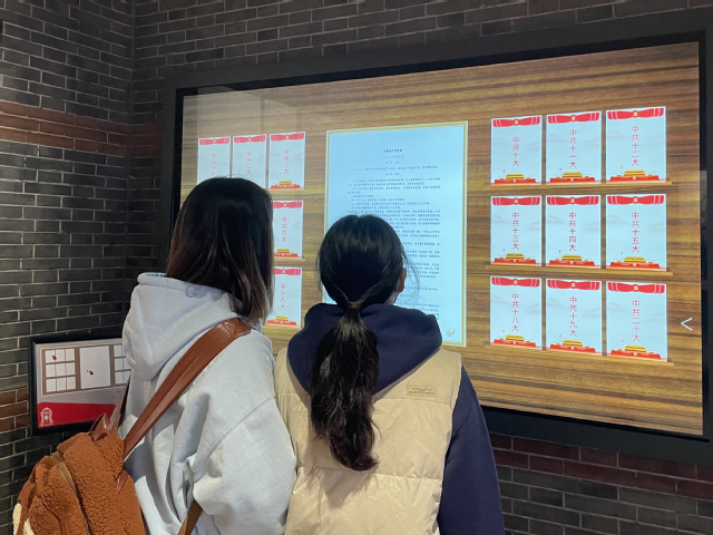 纪念馆始终贯穿“事为魂、史为桥、讲述会议”的理念,以党史知识与文化内涵为血脉,凸显中共“四大”的重要意义。在展区内,陈列着大量实物和照片,一件件、一张张地展现了党波澜壮阔的奋斗历程,让同学们重温了中国共产党从一叶扁舟到巍巍巨轮的百年巨变。