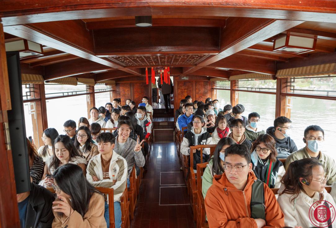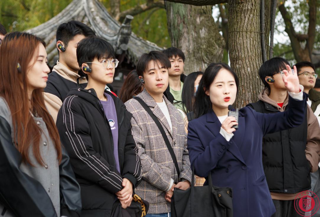 此次活动主要围绕“红船精神”展开,嘉兴南湖是中共一大会址,充满着历史底蕴。上午,104名学生乘坐大巴前往嘉兴南湖,到达地点之后,便乘船游览南湖,湖面宽广,波光粼粼,两岸枫叶尽染,秋色迷人。到达对岸后,大家便开始参观各个红色景点。首先,大家瞻仰了南湖红船,红船上有一个整体景观数字展示厅,通过现代科技手段,生动展现了中国共产党的光辉历程和南湖的丰富文化内涵。接下来,同学们沿路参观了钓鳌矶、烟雨楼、观音阁、清晖堂等景点,参观途中,讲解员伴随大家一路讲解,帮助同学们学到了很多历史知识。
