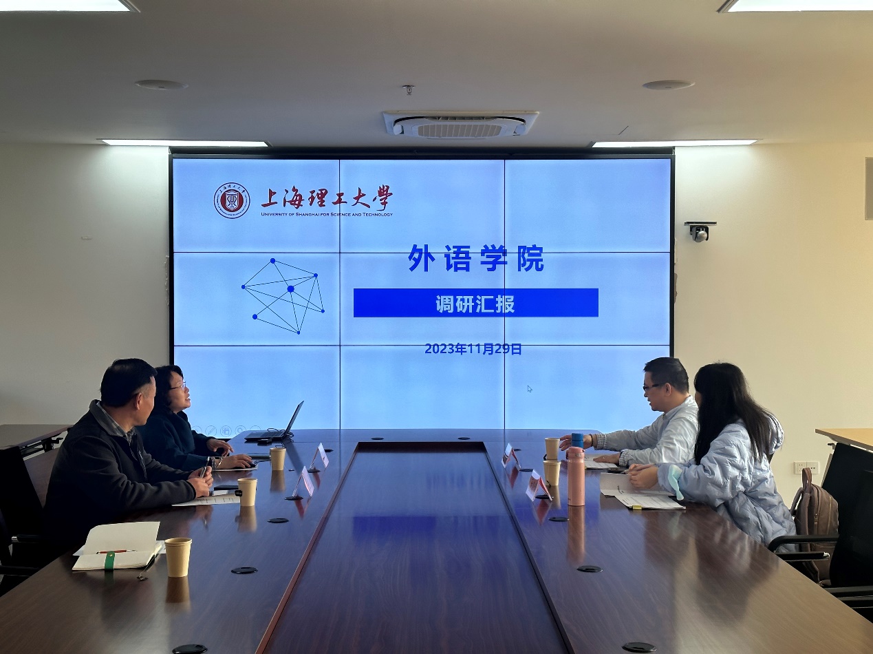 11月28日下午,上海电力大学外国语学院党委书记余静和院长潘卫民一行来必赢官网调研。必赢3003no1线路检测中心党委书记曲德强、副院长韩戈玲、党委副书记金小东、副院长张乐和相关教师参加了调研会议。会议由韩戈玲主持。