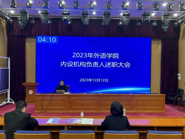 2023年12月12日下午,必赢3003no1线路检测中心在国合楼五楼报告厅召开年度述职评议大会,学院党政领导、各系(中心)和研究所负责人以及教师代表参加了会议。会议由学院党委书记曲德强主持。