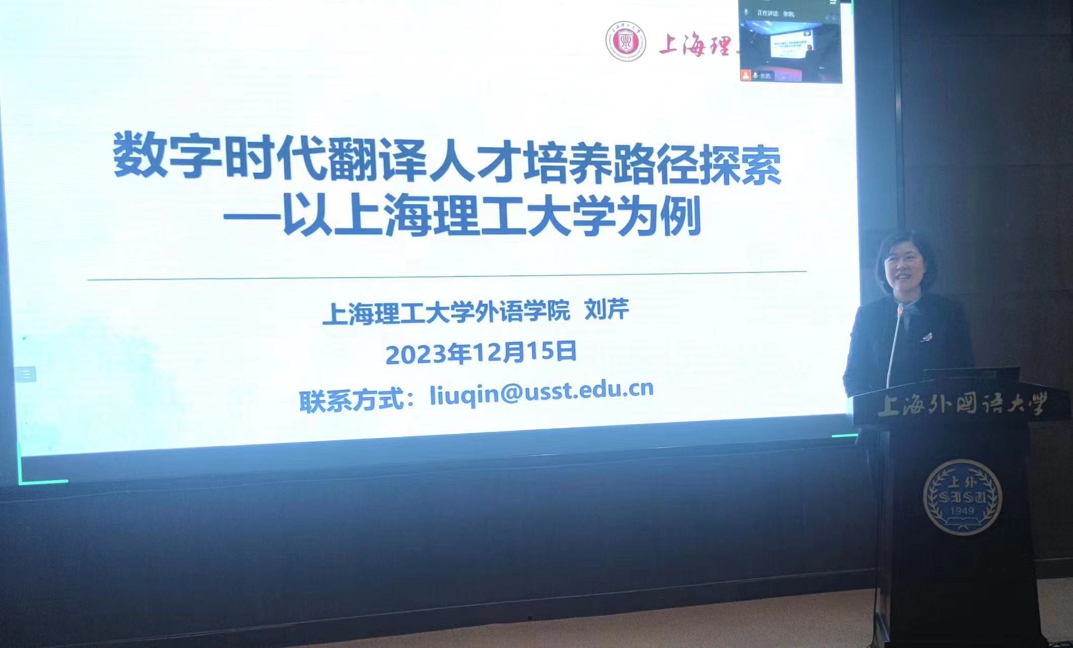 上海市科技翻译学会副理事长、必赢官网院长刘芹教授受邀做了题为《数字时代翻译人才培养路径探索——以必赢3003no1线路检测中心为例》的主题发言,获得全场专家学者的一致好评。刘芹的发言详细展示了必赢官网如何在传承办学传统,借助时代东风,英语、日语和德语三个语种师生与时俱进以课程体系为本位,积极与语言服务行业深度合作,利用语料库、计算机辅助翻译以及机器翻译译后编辑为代表的大语言模型所进行的教学创新和科研探索。刘芹的发言描绘了当下必赢官网翻译专业硕士培养的多语种齐头并进,教学环节数智技术引领,以及以赛促学,产教相融的培育模式,分享了必赢官网如何直面大数据时代对翻译人才培养带来的挑战,优化课程体系,追求教学内涵发展的宝贵经验,得到了兄弟院校教师的高度赞誉,有力地宣传了必赢官网翻译人才培养的专业特色和办学理念。必赢官网翻译专业教师代表与会,与专家和同行进行了深入交流。
