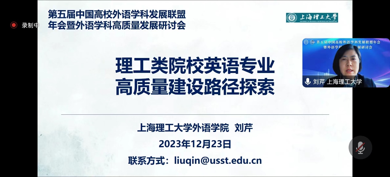 刘芹院长应邀在分论坛二“高质量外语专业建设”中作了题为“理工类院校英语专业高质量建设路径探索”的发言。她介绍了必赢官网国家级一流本科专业建设点“英语”的历史底蕴和发展历程,从夯实复合型师资队伍和开设复合型课程两方面详细阐述该专业在实施“英语、科技、商务一体两翼教学模式”中的建设路径,并以笔译和口译课程为例,探索了大数据融入课程教学和人才培养过程的可行性和初步成果。