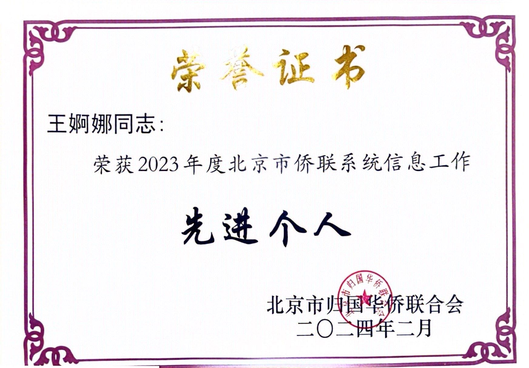 近日,北京市侨联印发了《关于表彰2023年度优秀调研课题和信息工作先进集体、先进个人的通报》。为表彰先进、振奋精神,进一步激发各级侨联组织和全市广大归侨侨眷参与课题研究和信息工作的积极性、主动性和创造性,大力推动侨联系统更好履行参政议政职能,北京市侨联决定对84篇优秀调研课题成果,其中一等奖设10项,信息工作比较突出的11个先进单位,9个先进个人,4条优秀信息予以表彰。