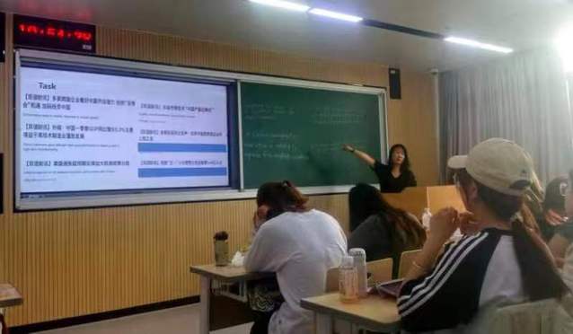 教学过程中,毕老师巧妙地融入了课程思政元素,在讲解课程内容时,她带领学生对近期国内外时政、经济、文化等新闻的标题进行了对比分析,并进行有针对性的练习,让学生在学习翻译技巧的过程中了解国家重大事件的新闻报道方式并增加对世界新闻的关注,从而增强学生的国家意识和责任感。