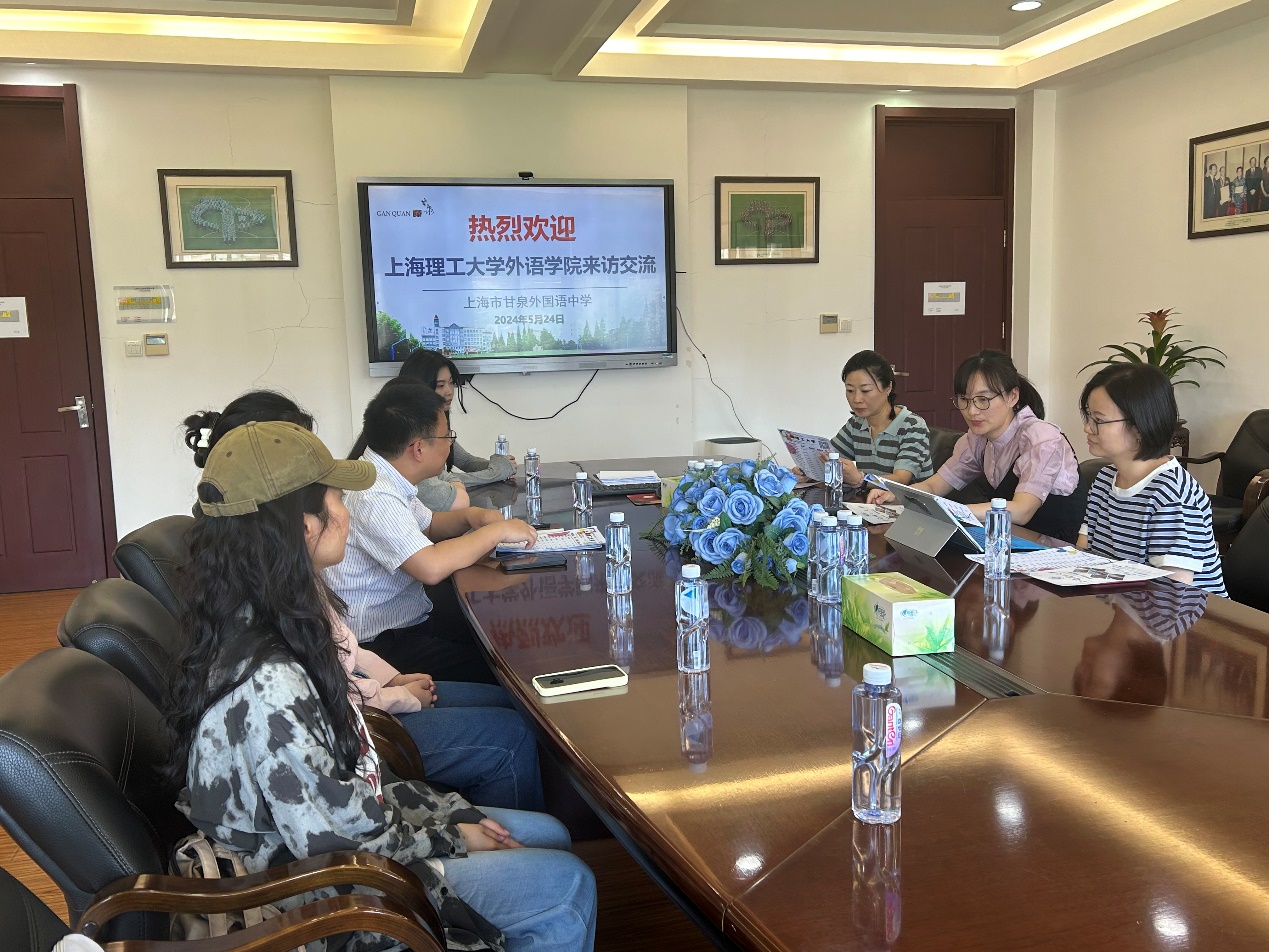 5月24日,必赢3003no1线路检测中心MTI教育中心副主任杨本明教授带队前往上海市特色高中甘泉外国语中学开展本科生招生宣讲及双方合作交流工作。上海市甘泉外国语中学校长杨云、校办主任王丹、课程教学部主任助理王玮参加了招生宣讲会。