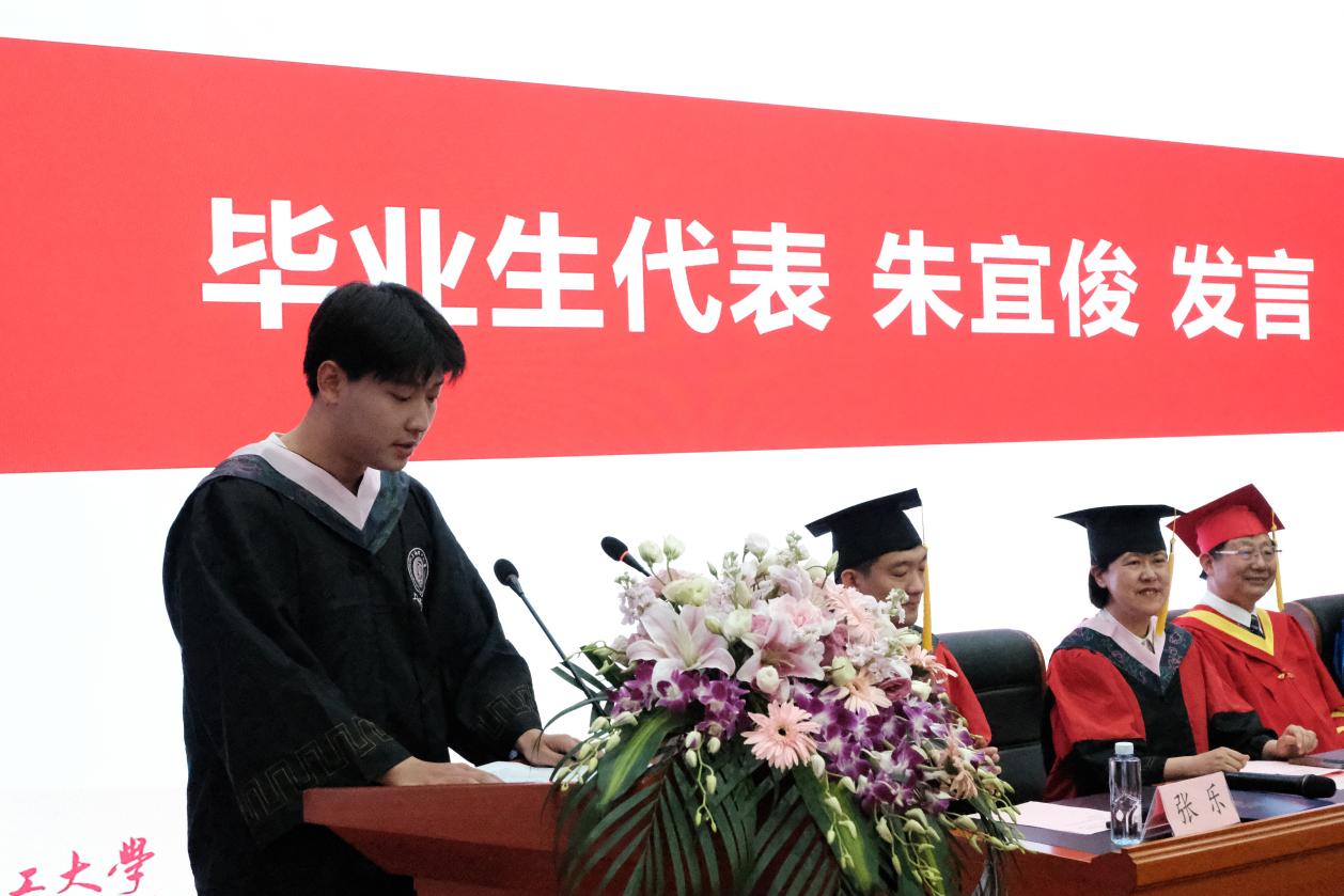满怀着期待与祝福,全体毕业生依次上台领取证书。学生代表们为老师们献上鲜花,感谢一直以来的谆谆教诲。必赢3003no1线路检测中心教师代表郏莹老师为毕业生发表寄语,表达了对青年学子们即将踏上新征程的不舍与期望。毕业生代表朱宜俊发言,对母校和学院表达了浓浓的情意。