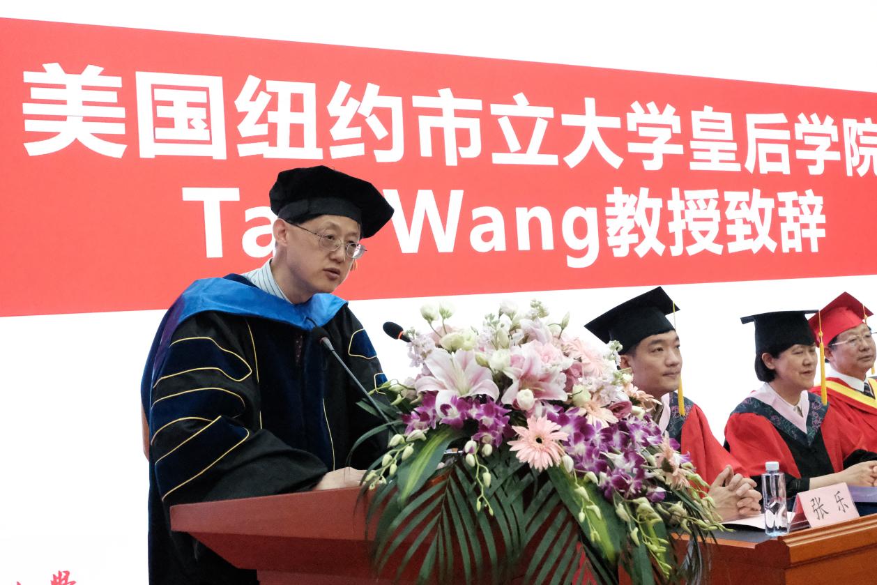 随后,Tao Wang教授代表皇后学院向毕业生们表示诚挚的问候,对必赢3003no1线路检测中心领导、老师、家长们对教育的辛勤付出表示感谢。Tao Wang教授讲述成为一个成功人士的必要品质:梦想、信仰、计划并且不畏失败,祝愿毕业生们携着这些美好品质踏上未来的成功之路。