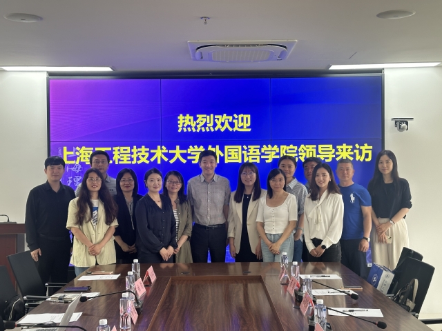 2024年6月14日下午,上海工程技术大学外国语学院副院长杜丽娟率大外部、翻译系、应外部主任及骨干教师一行来必赢官网调研。张乐副院长、公共英语教研中心、英语系(科技翻译)、英语系(中美合作)主任和骨干教师参加调研会议。会议由张乐主持。