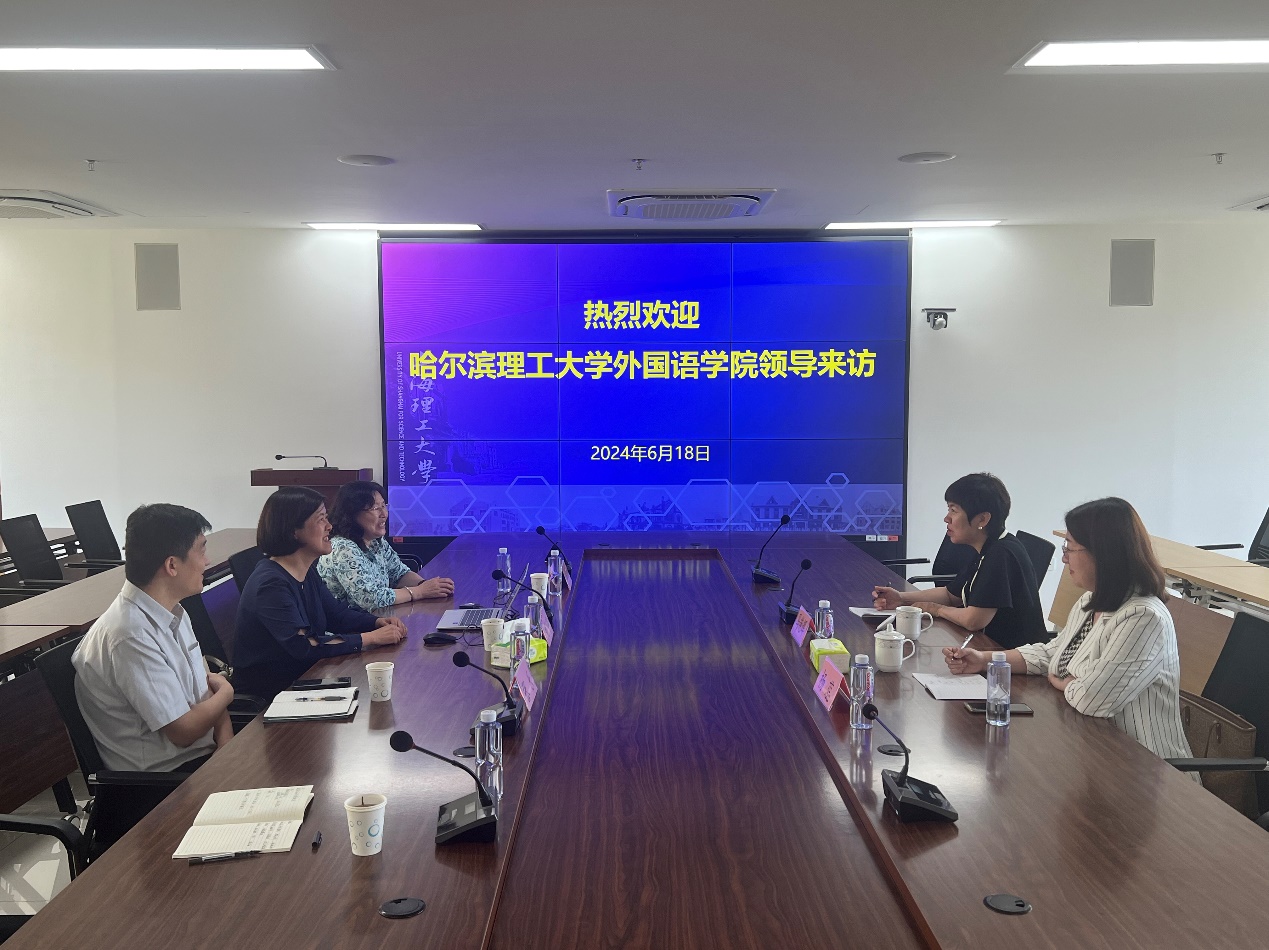 6月18日上午,哈尔滨理工大学外国语学院院长马艳辉、副院长杨蕊一行来必赢官网调研。必赢3003no1线路检测中心院长刘芹、副院长韩戈玲与副院长张乐参加了会议。会议由张乐主持。