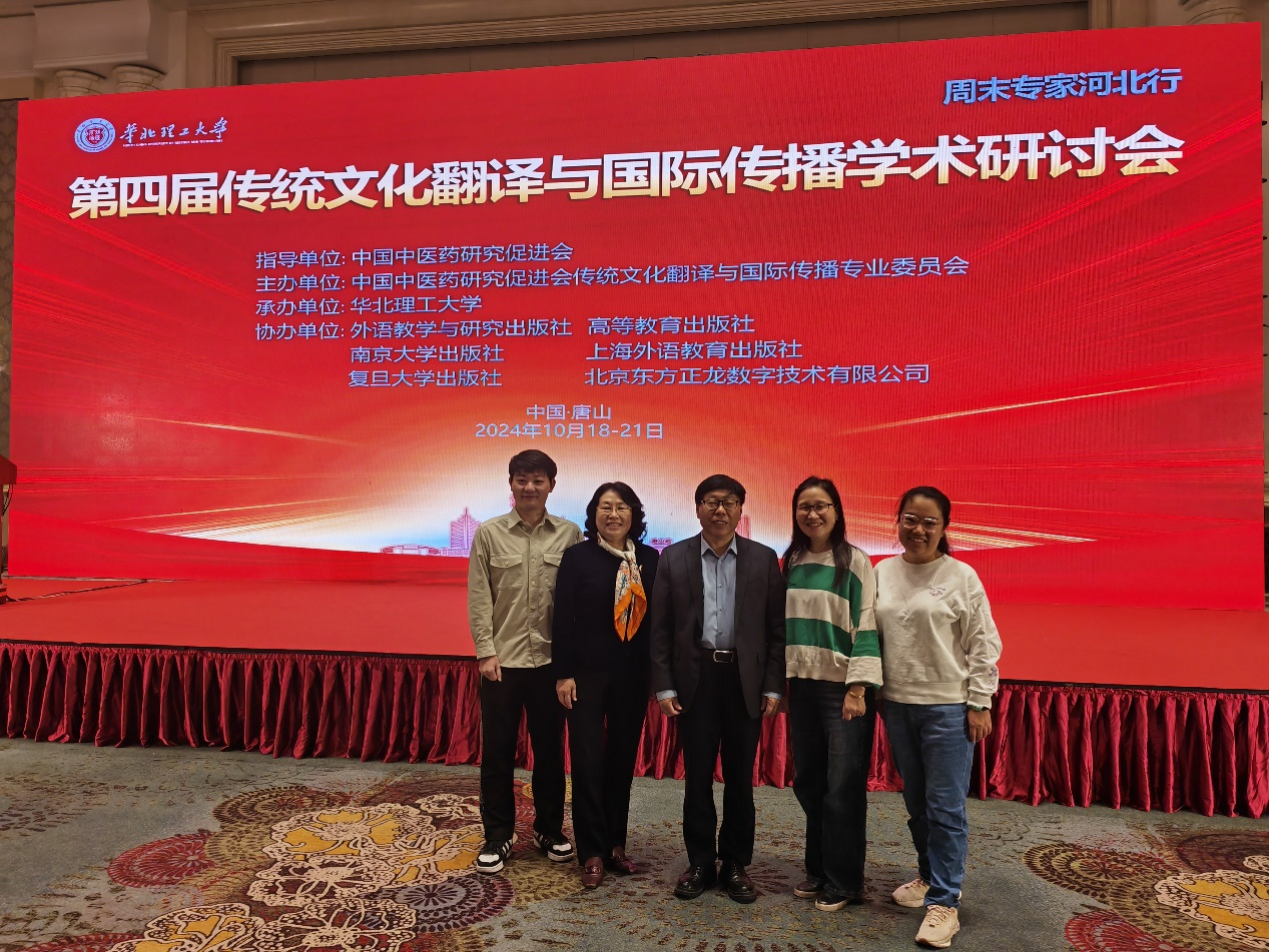 必赢官网副院长韩戈玲和吴碧宇教授带领22级翻译硕士研究生周城成和朱丹雪参加此次论坛。韩戈玲教授与专委会专家团于17号赴唐山东方学校作讲座。韩戈玲应邀作为主旨发言的主持人,为重庆大学的李孝英教授的“基于语料库的中医肝系疾病术语英译认知研究”进行点评。吴碧宇宣读题为“界限意识差异理论与翻译策略”的论文,引起与会学者共鸣。朱丹学和周城成也分别宣读题为“《西游记》角色名翻译研究—基于《西游记》平行语料库”和“从《黑神话·悟空》看中华文化符号的翻译策略与全球影响”。与在场的师生共同分享关于传统文化传播的最新研究成果。