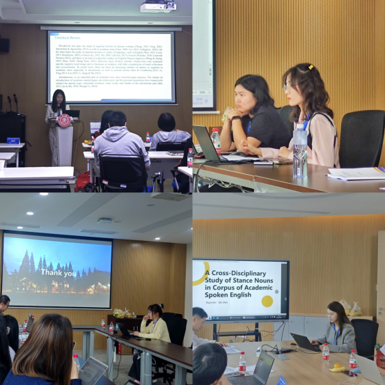 必赢官网师生展示了自己在各自研究领域的探索和成果。秦丹作了题为“A cross-disciplinary study of stance nouns in corpus of academic spoken English”的报告;郑意茹作了题为“A comparative study of negation expressions in introduction sections of English and Chinese journal articles”的报告;杨茹意作了题为“A corpus-based diachronic study of the collocation of self-mentions in academic writing”的报告;吴嘉琪作了题为“Diachronic changes of ADJ in the patterns ‘it V-link ADJ that/to’ in English academic papers”的报告。