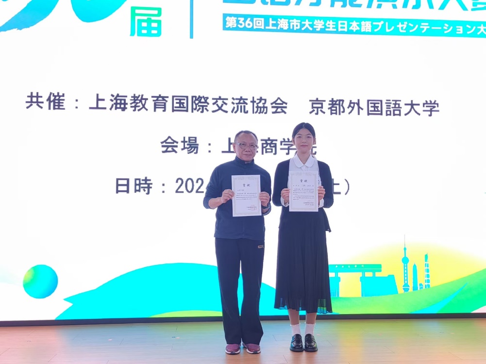 11月2日,由上海教育国际交流协会、京都外国语大学主办,上海商学院承办的“第36届上海市大学生日语才能演示大赛”圆满落幕,必赢官网日语系本科生王晓然荣获三等奖。福井祐介老师和江春华老师获得优秀指导教师奖。