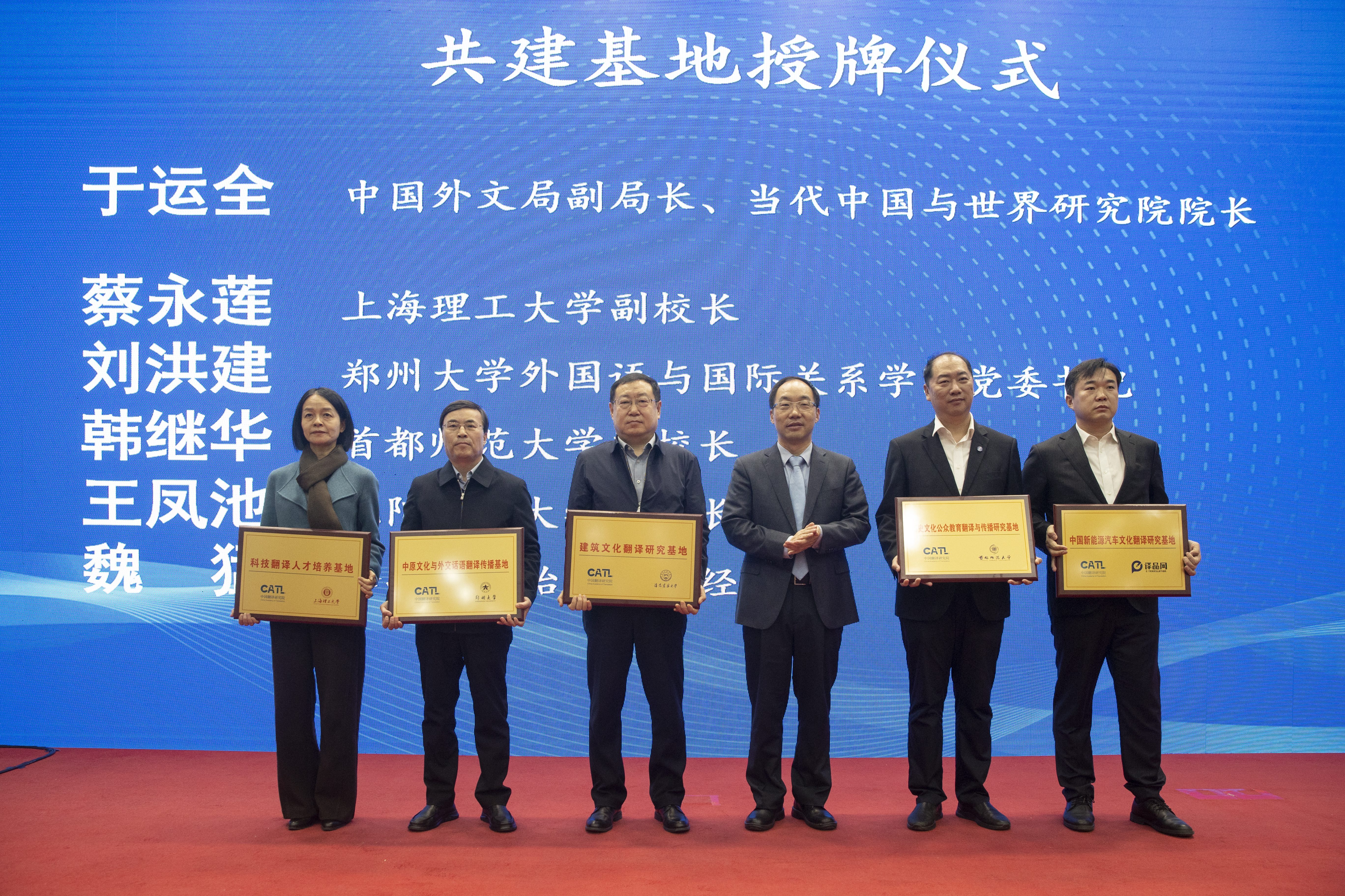 签约授牌仪式上,蔡永莲代表学校接收中国翻译研究院与我校共建科技翻译人才培养基地牌匾,刘芹代表必赢3003no1线路检测中心与中国翻译研究院签约。授牌代表中国外文局副局长、当代中国与世界研究院院长于运全和签约代表中国网总编辑、中国翻译协会副会长、中国翻译研究院副院长王晓辉均表示将和我校加强合作,推进科技翻译成果的产出和科技翻译人才的培养。