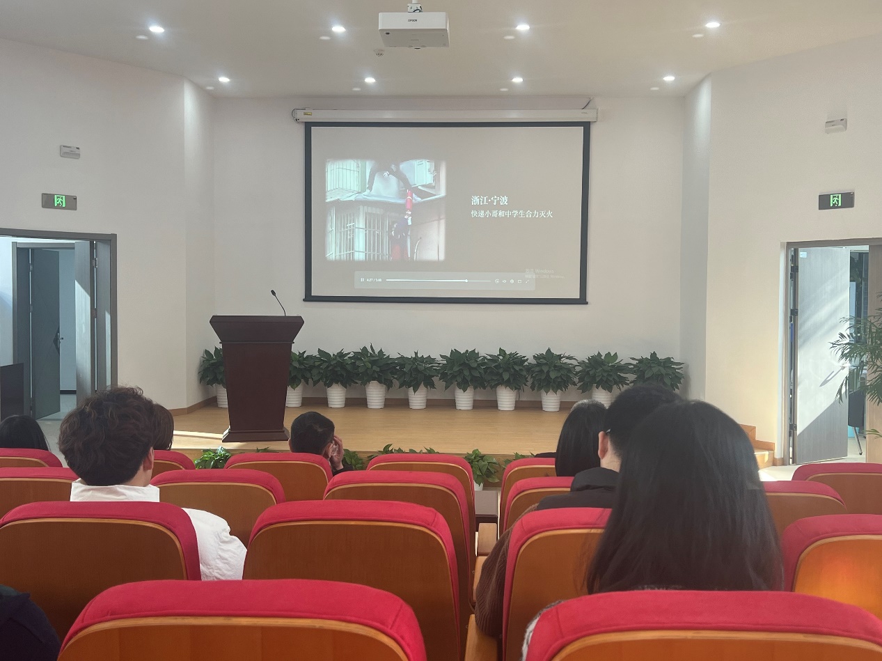 演练前,曲德强强调了消防安全的重要性,广大师生应不断提升消防安全意识和自防自救能力。希望本次培训通过观看视频、模拟演练等多种方式,让大家在实践中学习,在体验中提升。随后,大家观看了2024年全国消防宣传月活动主题宣传片和“全民消防 生命至上——关注消防安全守护平安校园系列视频”。