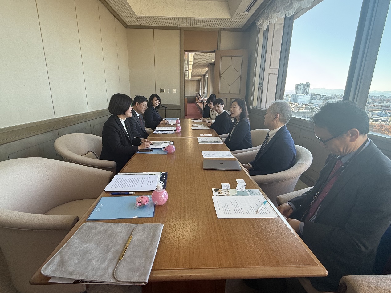 11月26日至27日,我校代表团一行访问了关西外国语大学(Kansai Gaidai University),受到了关西外国语大学理事长兼校长谷本荣子女士(Eiko Tanimoto)的热情接待。张华副校长与谷本荣子女士就外语教学改革、人才培养及师生交流互访等方面进行了广泛探讨,双方正式签订了一系列项目合作协议,标志着两校正式建立友好合作关系。出席此次会谈及签约仪式的日方人员有:亚洲中心中心长靳卫卫、亚洲中心副中心长吉崎诚(Makoto Yoshizaki)、亚洲中心北添龙大(Ryudai Kitazoe)课长和刘婧茹主任。此外,我校代表团还随同刘主任一起参观了关西外国语大学御殿山和中宫两个校区、谷本记念讲堂、图书馆、校史墙及留学生宿舍等,与该校教师就学生的学习和校园生活以及暑期游学项目等方面进行了交流讨论。