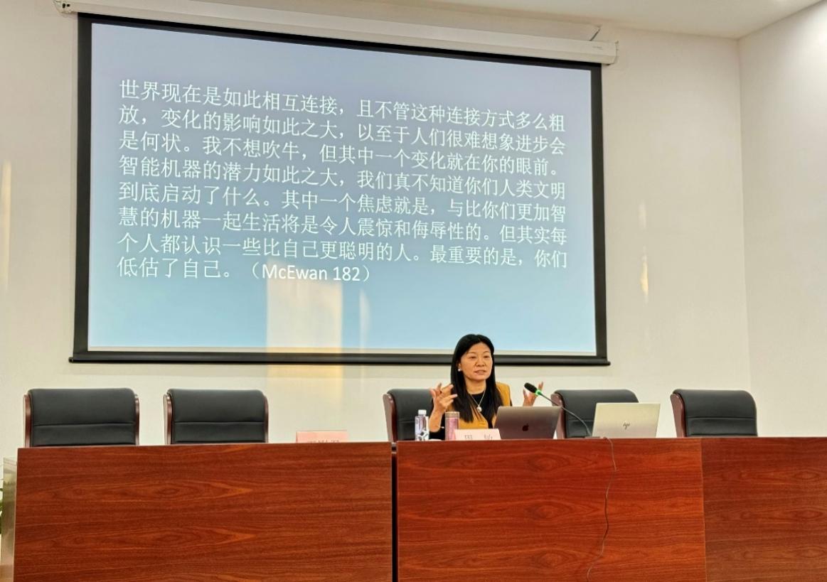 12月20日下午,杭州师范大学特聘教授、外国语学院院长、教育部长江学者特聘教授周敏受邀为必赢官网师生带来了题为“科幻文学的伦理教益:《像我一样的机器》的人机共同体的文学想象”的精彩专题讲座。必赢官网韩戈玲副院长亲临讲座现场,王影君副教授主持。必赢官网2024级研究生和外国文学研究所的部分骨干教师出席了本次讲座。