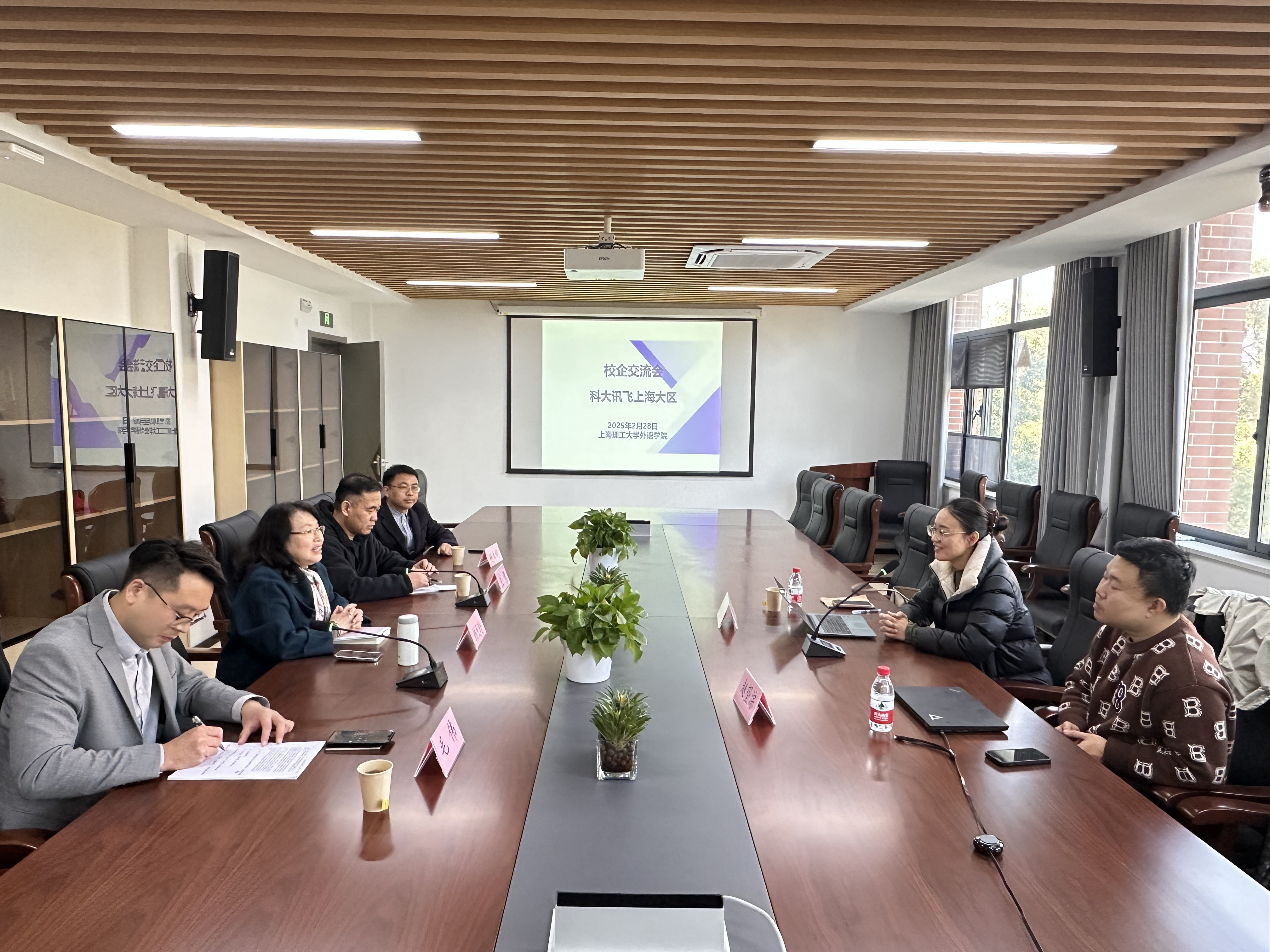 2月28日,必赢官网与科大讯飞上海区代表在306会议室举行校企合作交流会。必赢3003no1线路检测中心副院长韩戈玲教授主持会议,MTI教育中心主任王勇教授、副主任毛伟副教授、日语系主任杨本明教授与科大讯飞上海区行业总监林佳佳、客户经理赵望淙进行座谈交流。