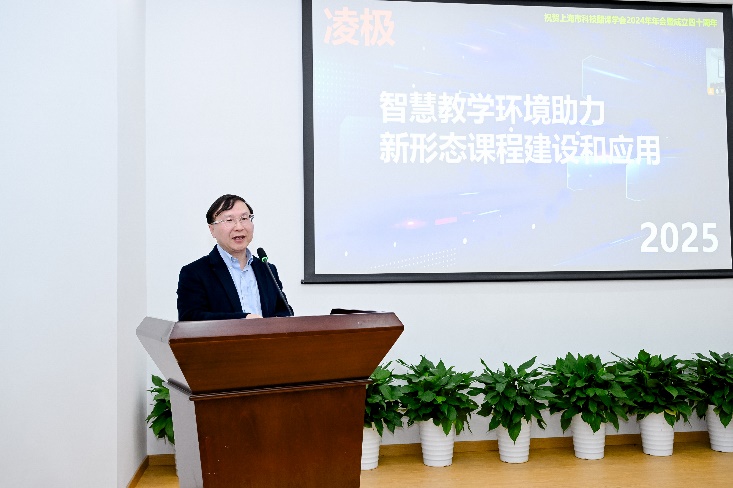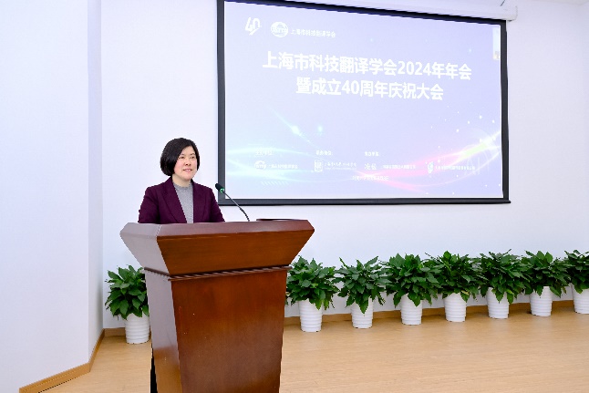 上海市科协处级调研员苏祺代表上海市科学技术协会致辞,向上海市科技翻译学会成立40周年致以热烈祝贺。他盛赞学会会刊《上海翻译》始终秉持“人无我有、人有我精、人精我优”的创新精神,聚焦应用翻译前沿,现已成为国内翻译研究领域的权威期刊,为学术界提供了高质量的交流平台。在生成式人工智能技术的浪潮下,学会展现出了与时俱进的魄力。