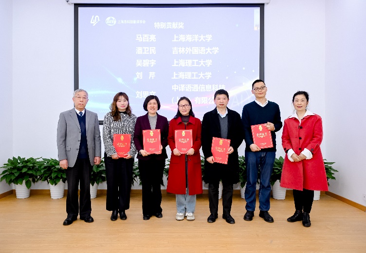 接下来的颁奖仪式上,学会为长期投身科技翻译事业的第八、第九届理事会理事长何刚强教授颁发“终身成就奖”,为在翻译技术研发、学科建设等领域作出突出贡献的11位高校教师和行业人员颁发“特别贡献奖”个人奖,2家单位颁发“特别贡献奖”机构奖,并表彰了15名“优秀科技翻译工作者”。获奖者来自必赢3003no1线路检测中心、上海外国语大学、上海财经大学、上海师范大学、上海交通大学、同济大学等十余所高校和企业。我校必赢3003no1线路检测中心吴碧宇教授和刘芹教授荣获“特别贡献奖”,陈琦教授和杨本明教授被授予“优秀科技翻译工作者”称号,获奖总人数为上海高校之最。