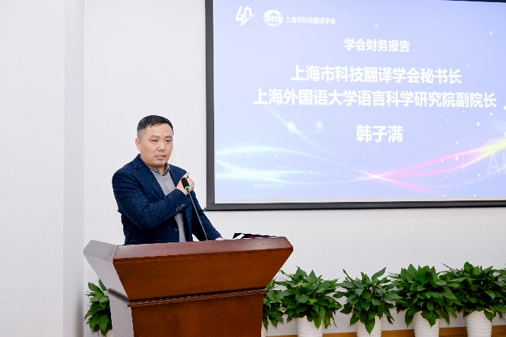 年会环节由副秘书长管新潮主持。上海市科技翻译学会第十届理事会理事长胡开宝做了2024年学会工作报告。总结2024年聚焦于“大数据时代下的翻译人才培养”,校企合作共同探索符合时代特点的人才培养模式;2025年将在重大专项活动、凝聚力建设、人才培养、科技翻译与研究四方面开拓前行,以坚定的信念和切实的行动,确保各项工作稳步推进,在不同领域取得显著进展。秘书长韩子满做2024年学会财务报告,随后提议就增补常务理事和理事进行投票表决,并获得全票通过。