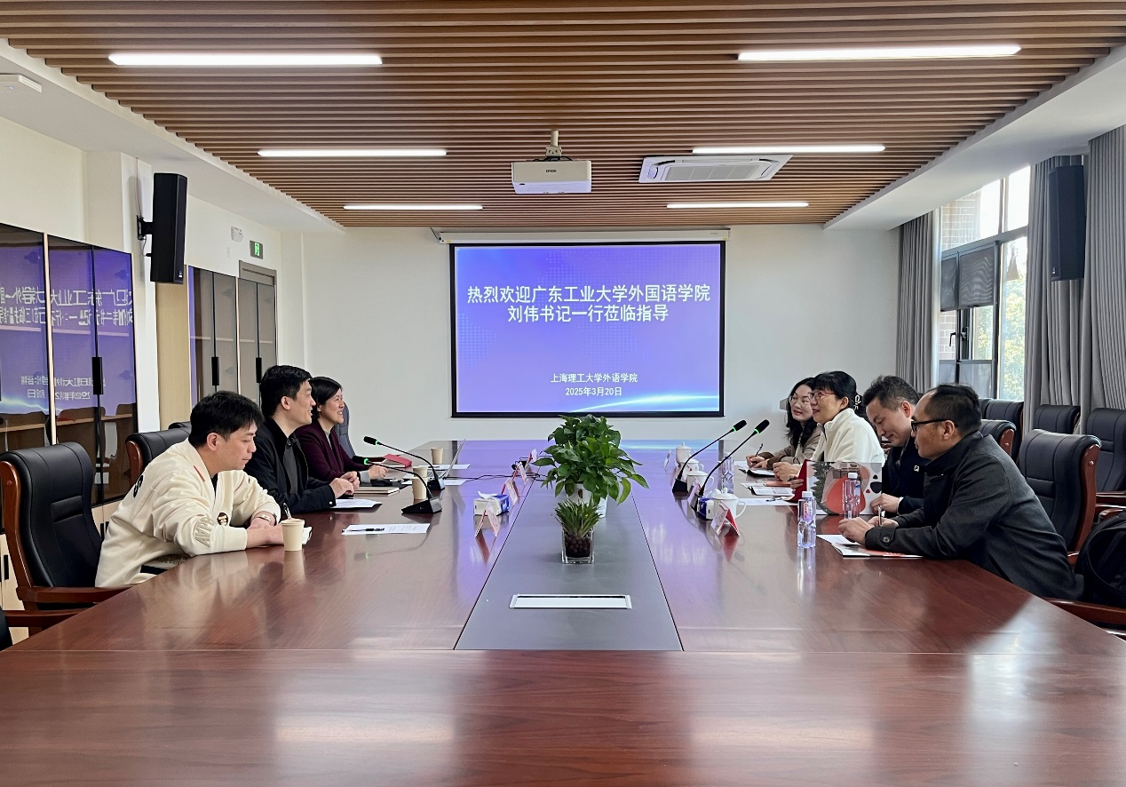 刘芹代表学院对广东工业大学外国语学院领导的来访表示热烈欢迎,并详细介绍了学院的历史沿革、学科专业、师资力量、科研情况、竞赛获奖、国际交流和人才培养等情况。