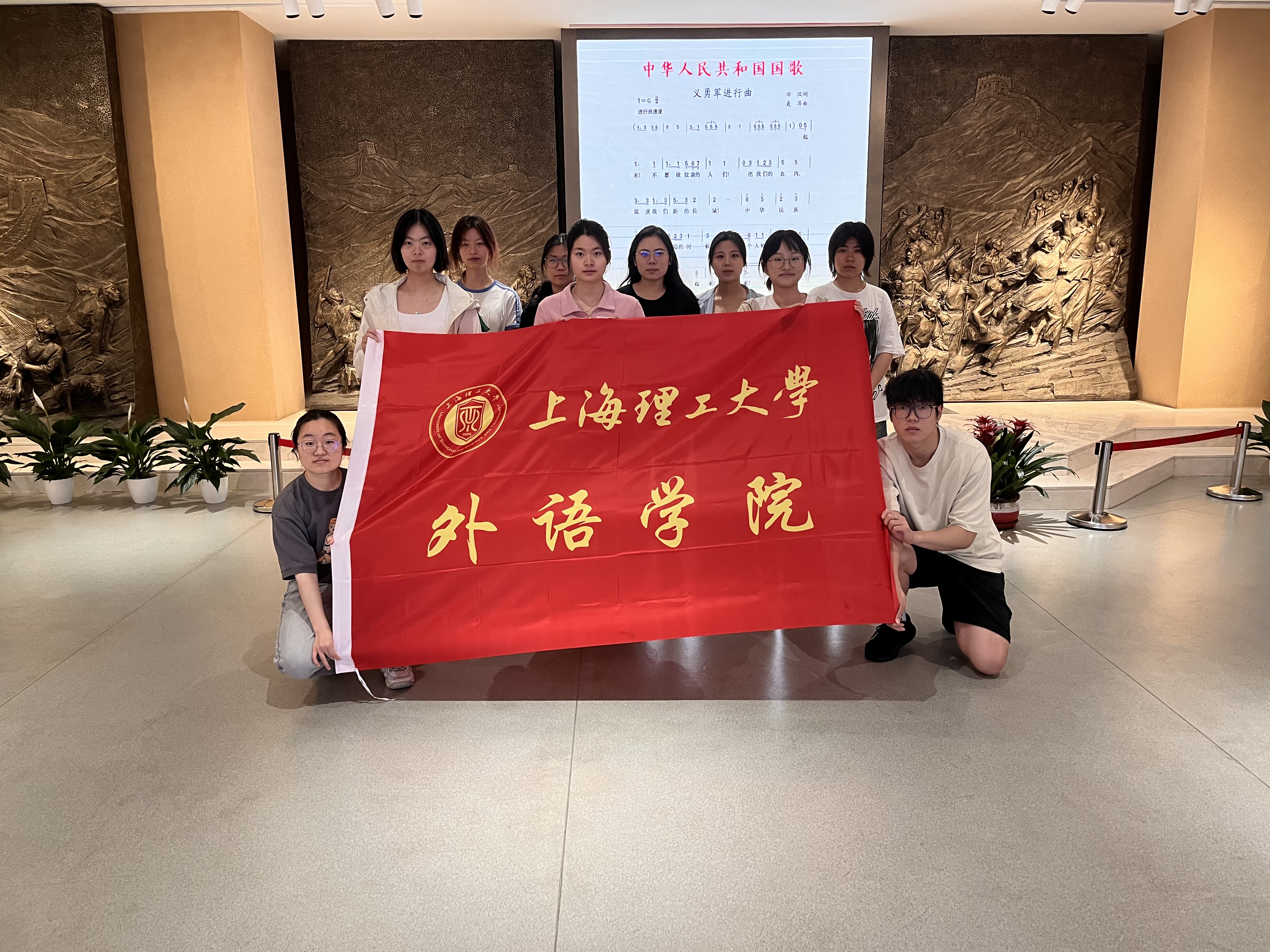 “国歌展示馆”依托《义勇军进行曲》的创作与传播史,以丰富详实的历史资料、沉浸式的展示空间,全方位呈现了中华人民共和国国歌背后的革命精神与时代价值。在讲解员的引导下,同学们参观了“国歌的诞生”、“国歌的力量”、“走向复兴”等多个展陈板块,通过文献资料、实物展品、互动多媒体等形式,重温了抗战烽火中振奋人心的革命旋律,深入了解了《义勇军进行曲》从电影插曲到国家象征的历史演变过程。