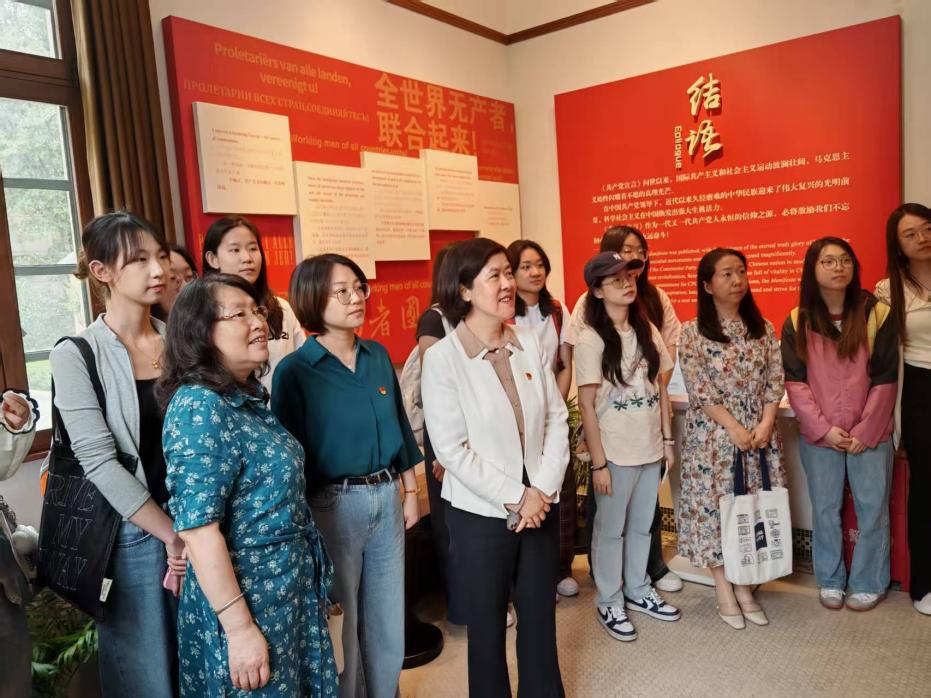 理论学习结束后,与会人员以及师生党员代表一同参观了《共产党宣言》展示馆。大家通过珍贵的历史文物、详实的文献资料,深入了解了《共产党宣言》的诞生、翻译、传播以及对中国革命和建设的深远影响。参观结束后观看了电影《望道》,影片中革命先辈们为追求真理、传播马克思主义所展现出的坚定信念和崇高精神,让师生党员接受了一次深刻的思想洗礼和党性教育。大家纷纷表示要传承陈望道先生的精神,发挥专业优势,以语言为桥梁,讲好中国故事,传播好中国声音,让世界更好地了解中国,让马克思主义真理在国际传播中绽放更加灿烂的光芒。