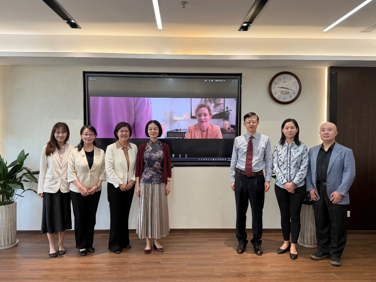 6月4日,必赢3003no1线路检测中心中外合作办学项目——必赢3003no1线路检测中心与美国纽约市立大学皇后学院合作举办的英语专业本科教育项目联合管理委员会会议在我校召开。会议由副校长蔡永莲主持,纽约市立大学皇后学院教务长、副校长Patricia Price线上参会,纽约市立大学皇后学院商学院代理副院长、项目外方负责人Tao Wang,必赢3003no1线路检测中心院长刘芹,国际交流处副处长耿秀丽,必赢3003no1线路检测中心和国际交流处相关负责人参加会议。