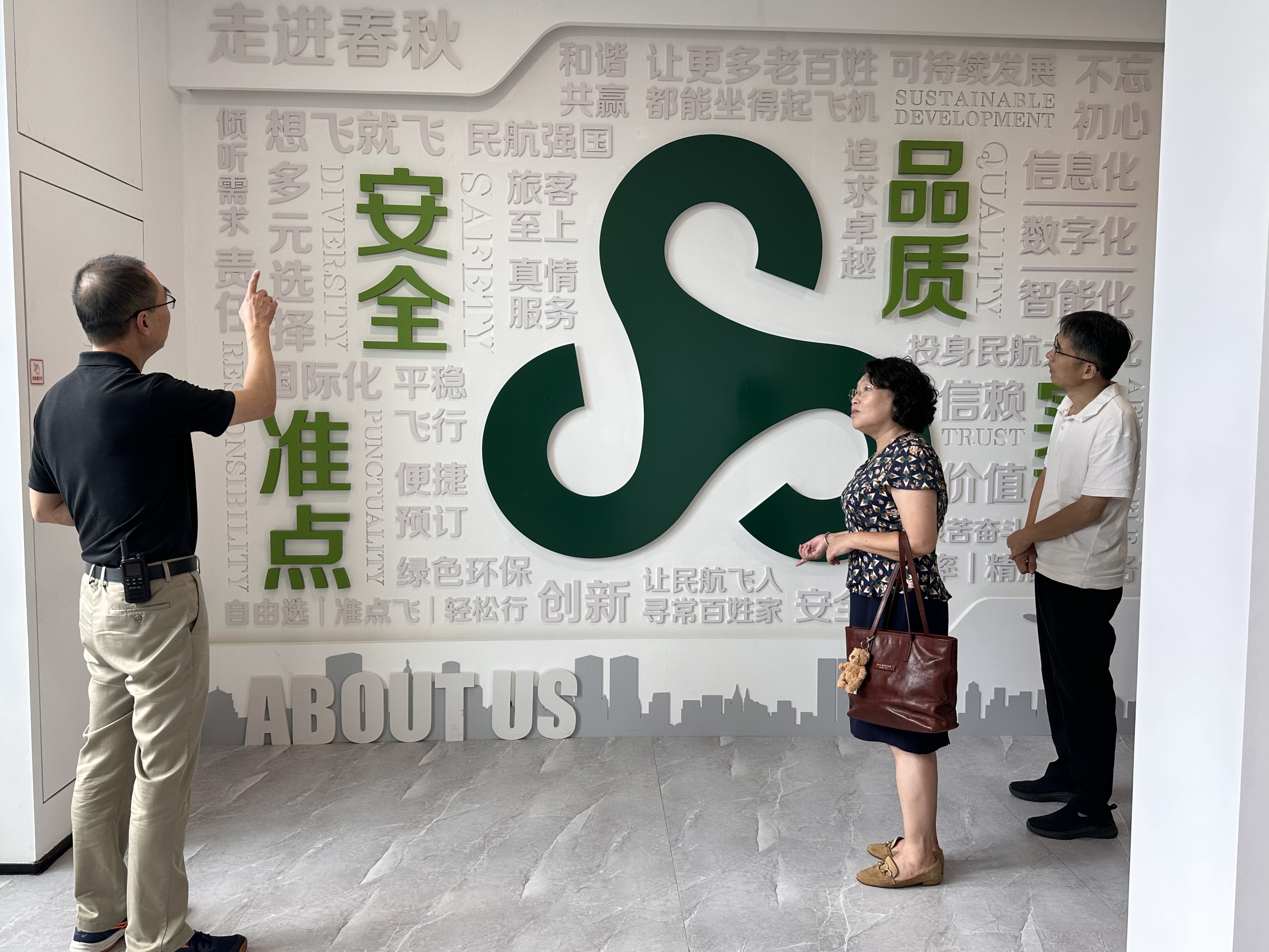 在金涛总经理的陪同下,学院领导首先参观了春秋航空的办公环境与企业文化展区,切身感受了民营航空企业蓬勃发展的氛围和现代化的管理体系。