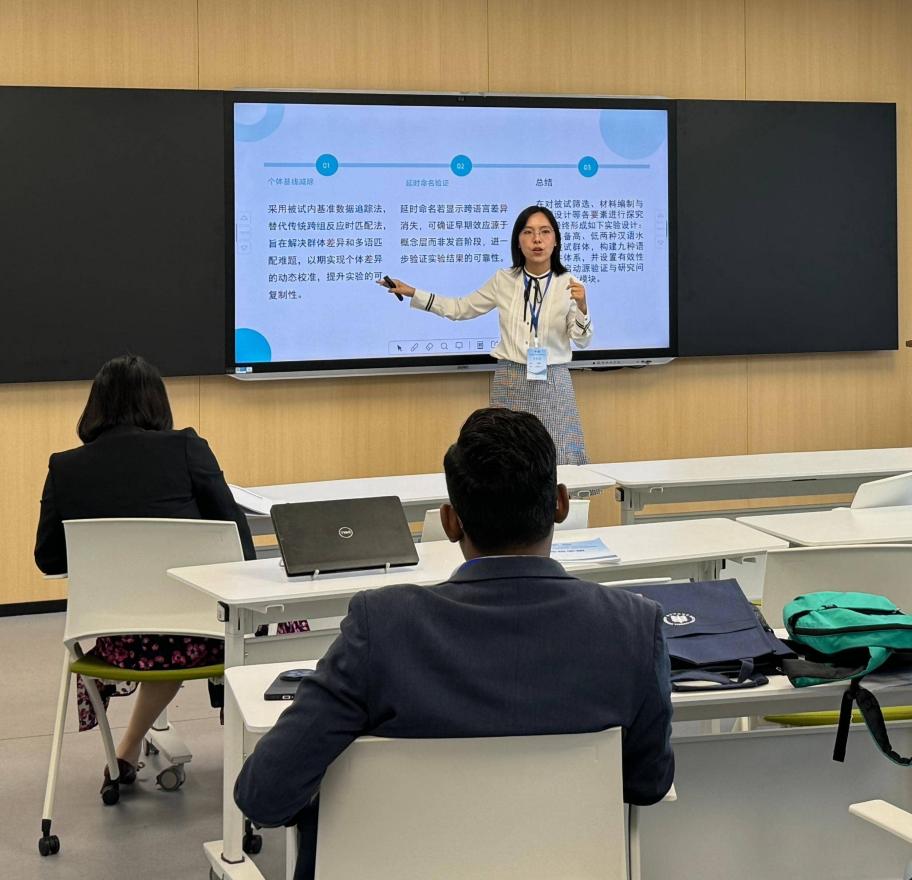 会议期间,倪锦诚教授作为第16分论坛“儿童二语习得研究新进展”的召集人之一主持了该论坛,并做了题为《AI 赋能儿童二语习得研究新范式:视角、方法与个性化教学创新》的论坛报告,系统阐释了人工智能驱动的儿童二语习得模型构建、多模态数据挖掘与个性化教学路径,引发与会专家热烈讨论。计霄雯博士在分论坛做了题为《三语者概念表征启动实验的有效性研究》的报告,深度探讨了以三语者概念表征为研究目的时启动实验的有效安排,从实验被试、实验材料、实验过程等方面论述具体实操方式。研究生论坛环节,必赢官网2023级硕士生安文彩以《基于人工智能与大数据的英语写作教学模式》为题汇报了利用大语言模型即时反馈提升中国大学生英语写作能力的实验成果;硕士生李秋彤则聚焦研究《复杂动态系统理论视角下的二语词汇习得研究:个体认知能力差异与多模态教学的交互作用》,通过眼动与行为数据揭示了认知风格与多模态输入对词汇保持率的动态影响;硕士生薛琪分享了《AI驱动组块策略对儿童英语阅读能力影响及应用研究》的研究成果,与在场师生一起研讨了AI辅助组块策略在儿童二语学习中的显著作用;硕士生余昊潼围绕《文化资本视角下少数民族儿童二语习得困境剖析与策略——以四川某地儿童为例》,汇报了社会文化资本的差异是如何影响少数民族儿童的英语学习并对此提出了针对性策略。四位研究生同学的汇报逻辑严谨、数据详实,获得现场与会专家的一致好评。