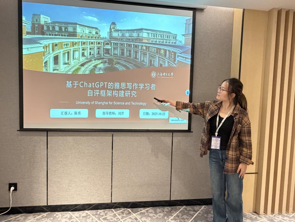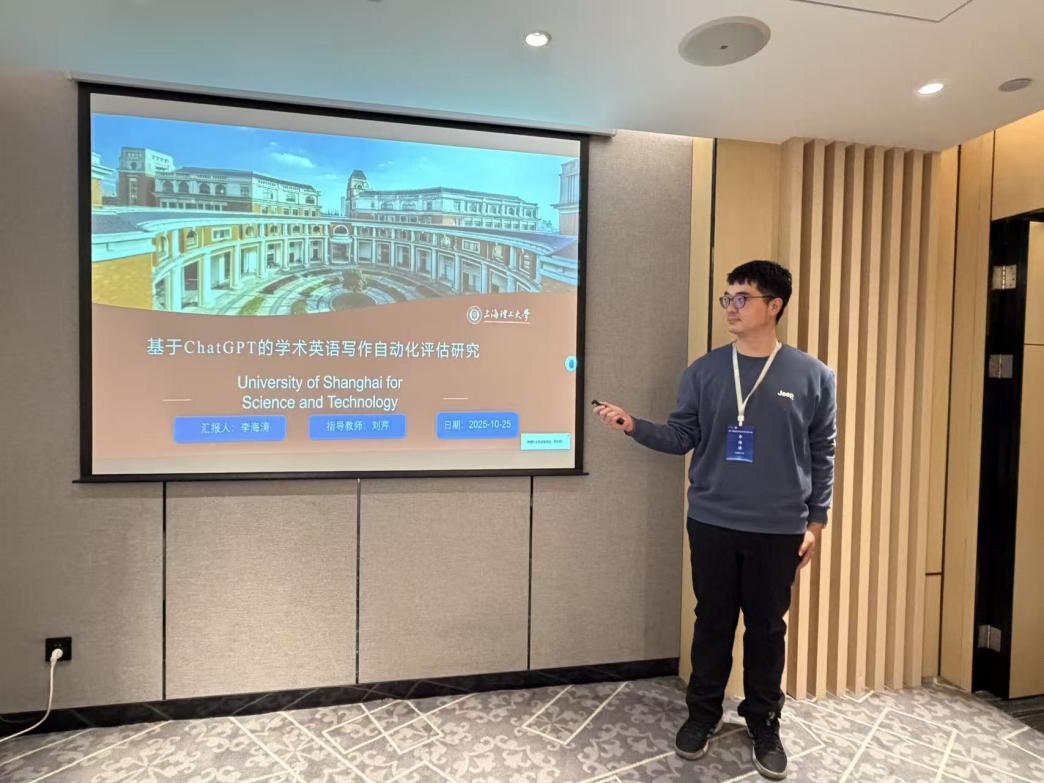 必赢官网院长刘芹教授携研究生代表参会。刘芹应邀担任“专题论坛(五)人工智能与诊断测试研究”的与谈人和“平行论坛(一)数智技术,认知神经与语言测评”的点评专家。必赢官网2024级外国语言文学研究生李海涛和陈秀在“平行论坛(一)数智技术,认知神经与语言测评”中分别进行了学术汇报。李海涛在题为“基于ChatGPT的学术英语写作自动化评估研究”的报告中,探讨了运用ChatGPT进行学术英语写作自动化评估的研究成果。陈秀在题为“基于ChatGPT的雅思写作学生自评框架构建研究”的报告中,探讨了将ChatGPT有效融入雅思写作自评框架的构建路径。两位研究生同学的汇报逻辑严谨,数据详实,获得现场与会专家的一致好评。