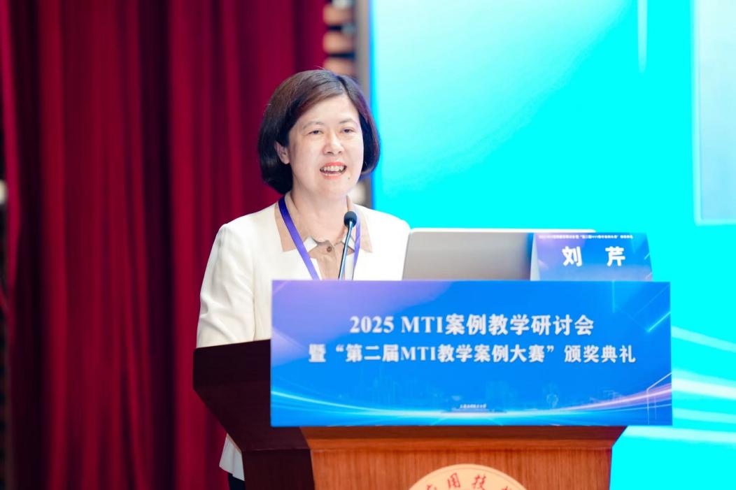 在颁奖典礼环节,刘芹对本次大赛的主办、承办及协办单位、赛事规模与评审流程进行了介绍,指出大赛自2025年2月15日启动、4月底截止,共收到来自全国122所高校的247个案例,涵盖笔译、口译、翻译技术与项目管理四大方向,经过多轮评审与复核,最终评选出各组优秀案例。张爱玲则对大赛的评价标准进行了详细说明,重点阐释了案例的创新性、实践性与教学价值等评审要点。