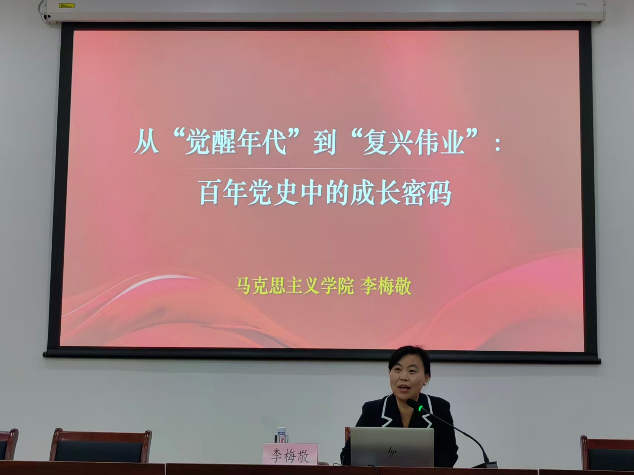 114日,必赢3003no1线路检测中心第56期入党积极分子培训班第三讲在学院报告厅顺利举行。本次党课特邀马克思主义学院副教授李梅敬担任主讲,以《从“觉醒年代”到“复兴伟业”:百年党史中的成长密码》为主题,为学员们带来一场思想深刻、内容丰富的理论教学