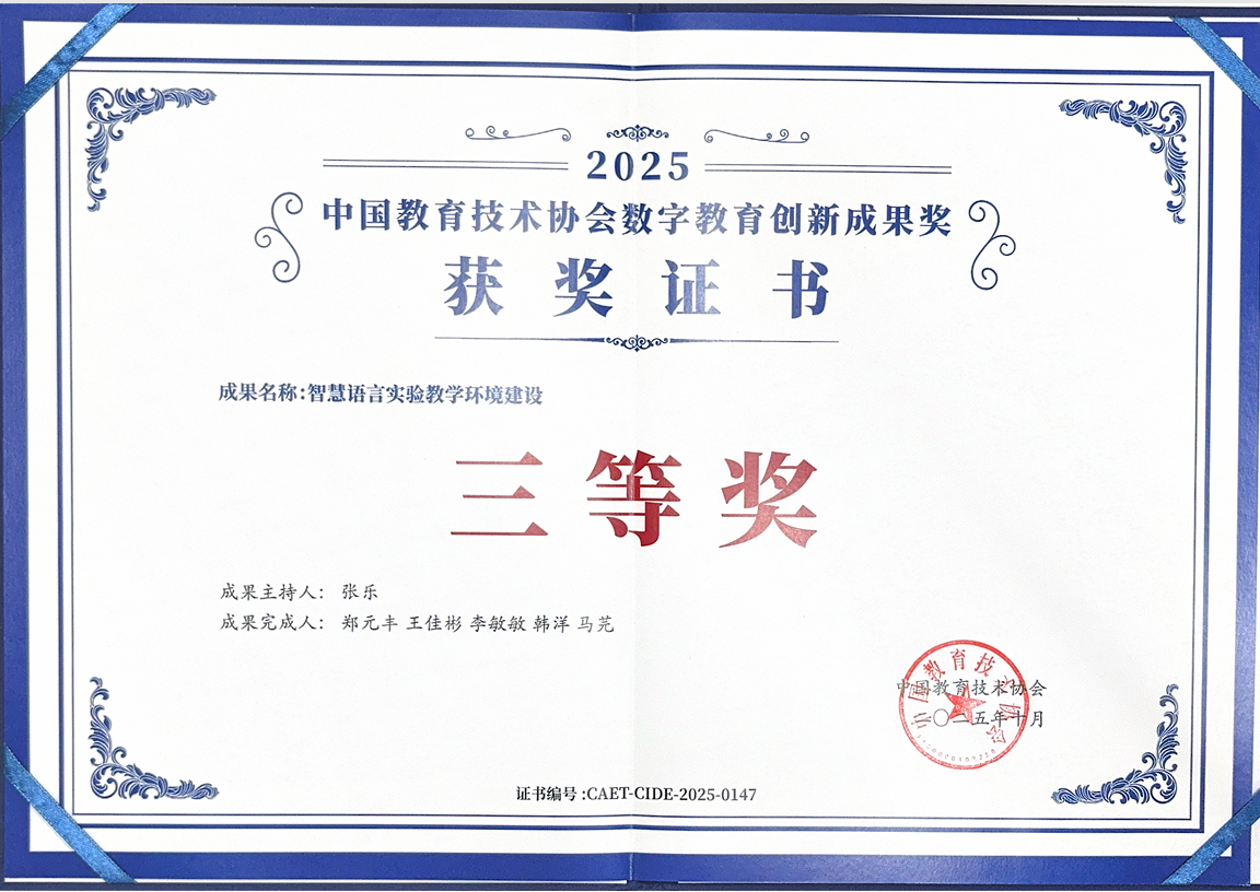 近日,中国教育技术协会正式公布“数字教育创新成果奖”获奖名单。必赢3003no1线路检测中心“智慧语言实验教学环境建设”荣获全国三等奖。