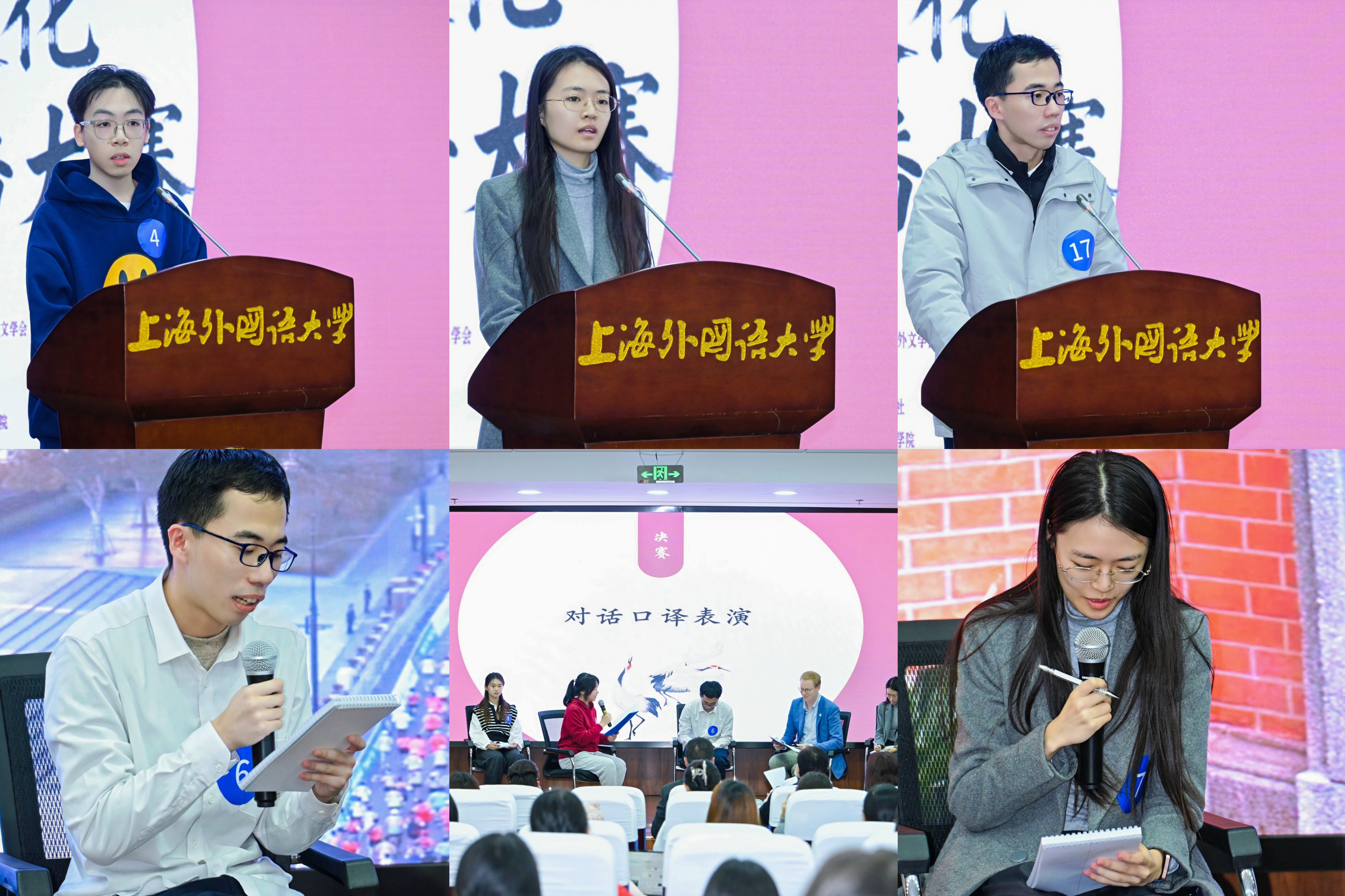 英语系(中美合作)的王晨副教授担任本次比赛的现场指导,来自英语系(中美合作)与英语系(科技翻译)的共三名本科生同学参加比赛。比赛共设四轮淘汰环节,涵盖英译汉口译、思政主题汉译英口译、跨文化笔试以及交替传译。在中外嘉宾围绕上海文化与城市精神对话的传译环节中,三位同学表现尤为突出,他们以流畅的表达、准确的语际转换和深厚的文化积累,赢得了现场评委的高度认可。
