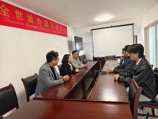 在无锡太湖翻译有限公司,学院一行与公司总经理戴赟斌进行座谈交流。戴赟斌结合自身作为资深翻译、企业经营者和外语教育者的三重身份,从多重视角分析了翻译人才培养的未来方向。他强调,翻译人才的培养应紧密围绕实际应用场景,强化学生的跨学科专业能力,使其更好地适应岗位需求。双方还就翻译专业研究生实践基地的进一步建设进行了深入探讨。
