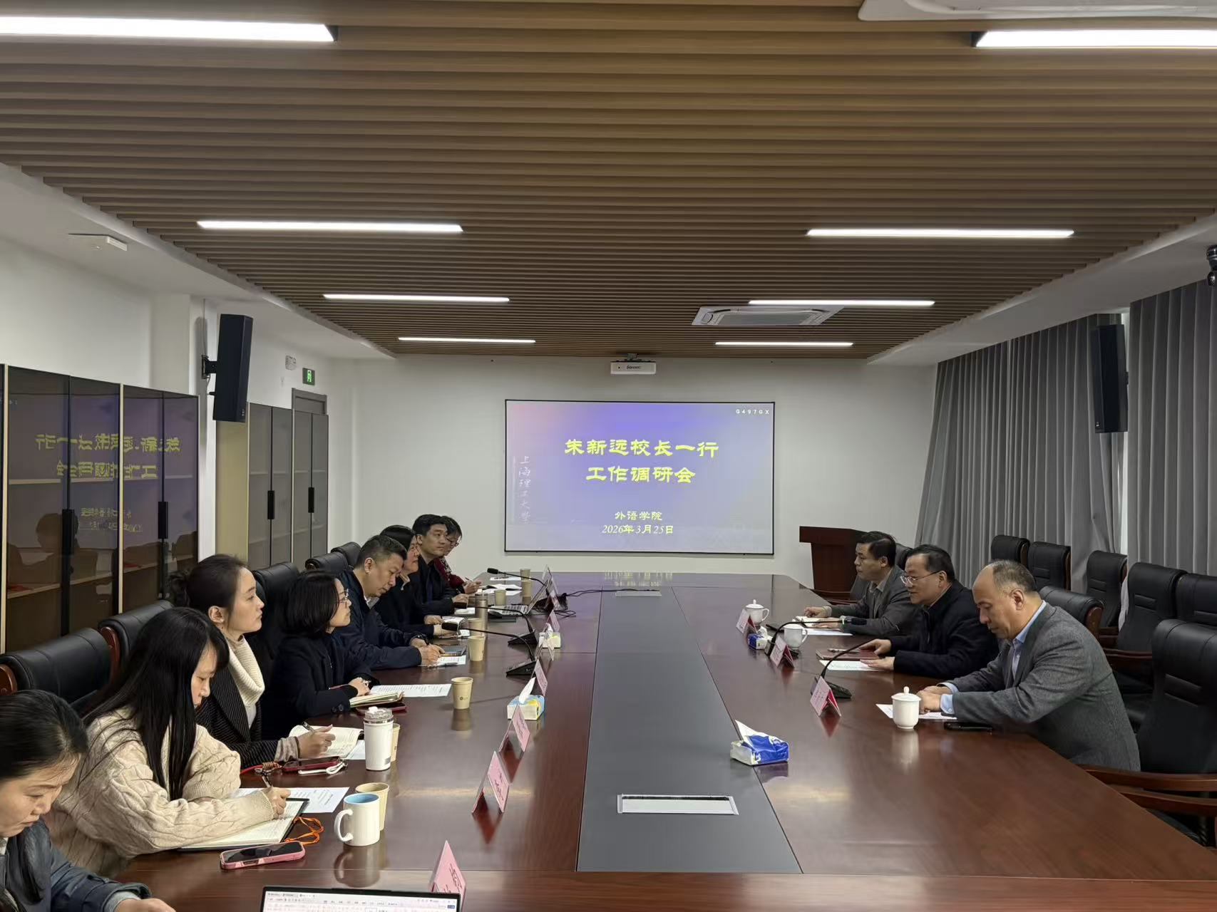3月25日上午,朱新远校长一行莅临必赢3003no1线路检测中心调研综改工作。教务处处长单彦广、学校党政办副主任何建佳陪同出席。必赢3003no1线路检测中心党政领导班子、各系部主任与教师代表参加会议。本次调研旨在深入研讨学校教育综合改革中,构建“以学生为中心”的外语教学改革方案,赋能学生个性化学习与真实场景中的外语应用能力,以应对新形势下国家对国际化复合型人才培养的迫切需求。