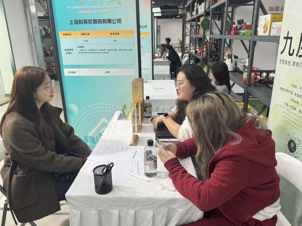 活动当天正值虹桥品汇直播电商基地举办“电商直播行业”专场招聘会,学院抓住契机“送生上门”,组织各年级学生深入招聘现场。高年级学生携简历精准投递、参加面试,低年级学生则通过观摩交流,提前感知行业需求与岗位画像。学生们在与HR的零距离互动中,沉浸式体验招聘流程,深入了解电商直播行业的前沿动态,进一步明晰了个人职业发展的方向与路径。