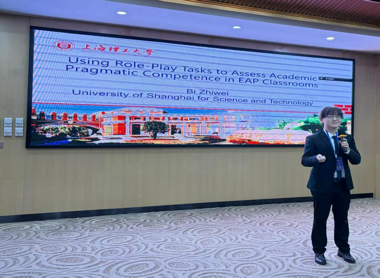 必赢官网院长刘芹教授携教师及研究生代表参会。刘芹应邀担任“特邀论坛(二):课堂测评”的召集人以及“主旨发言三:人机协同考试对教师身份认同的反拨效应--一项基于活动理论的自我叙事研究”的主持人。必赢官网毕志伟副教授和2024级外国语言文学研究生李海涛同学分别在“特邀论坛(二):课堂测评”中进行学术汇报。毕志伟在题为“基于角色扮演任务的学术语用能力课堂评估研究”的报告中探讨了角色扮演任务对学生语用能力的影响。李海涛在题为“大语言模型辅助理工科学术英语写作自评效果研究”的报告中探讨了使用大语言模型辅助学生开展自评的有效路径。2025级外国语言文学研究生李佳丽和欧阳桐桦在“平行论坛(一):语言测评与教育教学”中分别进行题为“国内外学术英语测评研究演进与热点分析”和“国内外英语课堂测评研究动态对比分析”的报告。必赢官网师生的汇报选题新颖、逻辑严谨、数据详实,获得与会专家的一致好评。